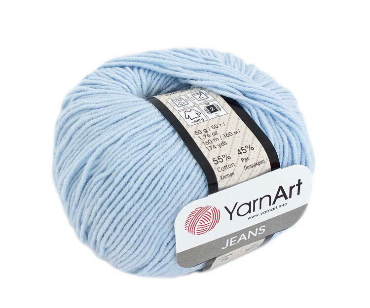 Пряжа YarnArt "Jeans", 55% хлопок, 45% акрил, 160 м/50 гр, (75 бледно-голубой), 1 шт
