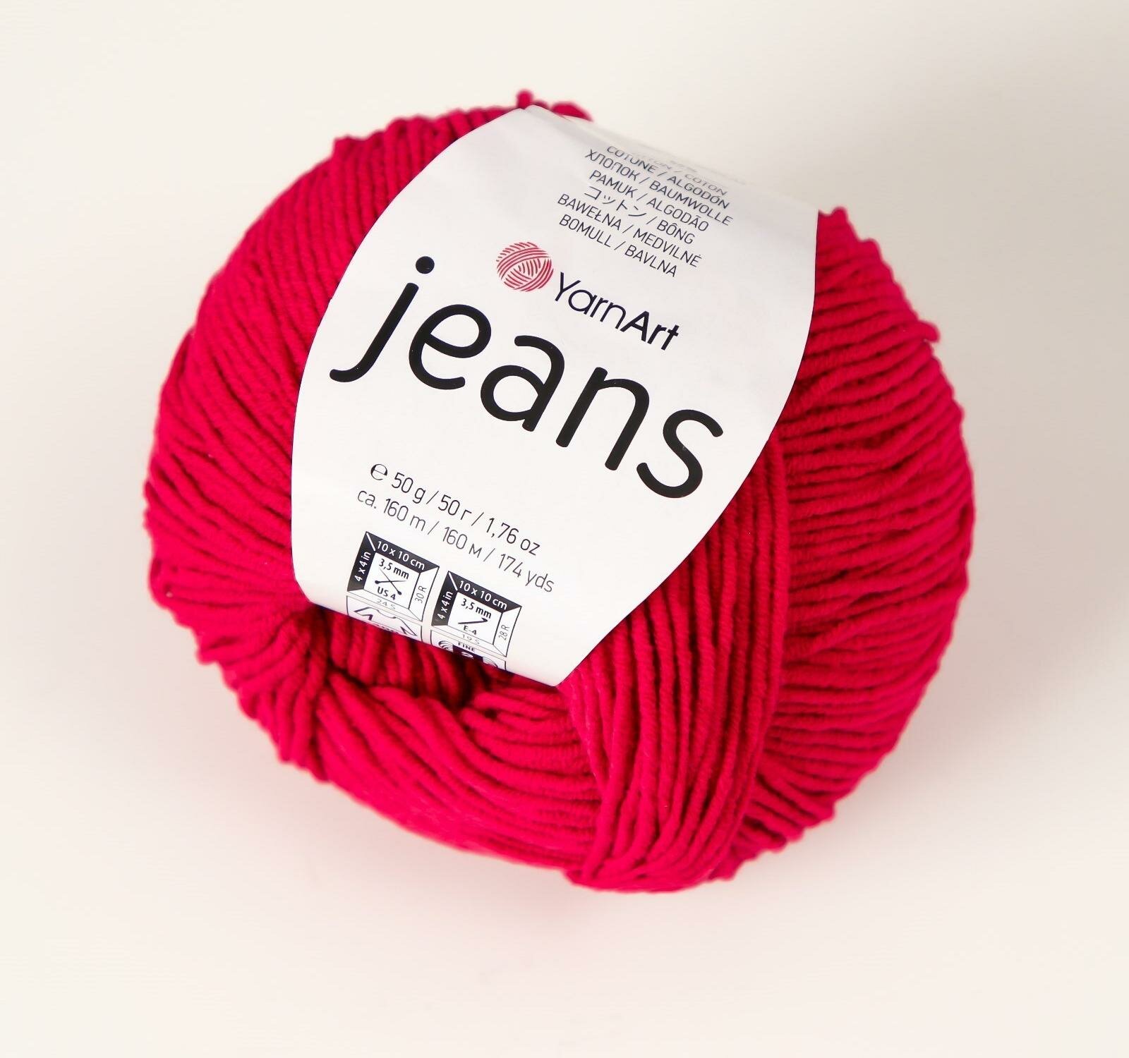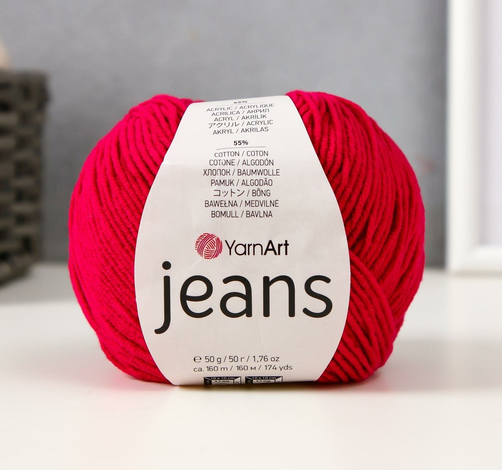 Пряжа "Jeans" цв. 90 красный 55% хлопок 45% полиакрил 160м/50гр "YarnArt"