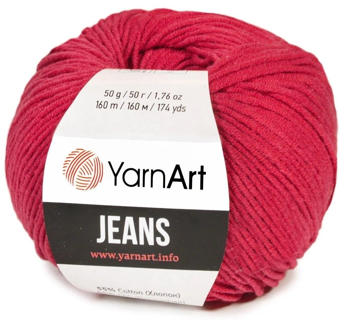 Пряжа для вязания спицами, крючком YarnArt, Jeans, 55% хлопок, 45% акрил, 160 м/50 г, (51 вишня)