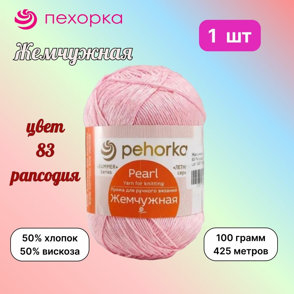 Купить Пряжа Пехорка Жемчужная рапсодия (83), 50%хлопок/50%вискоза, 425м, 100г, 1шт