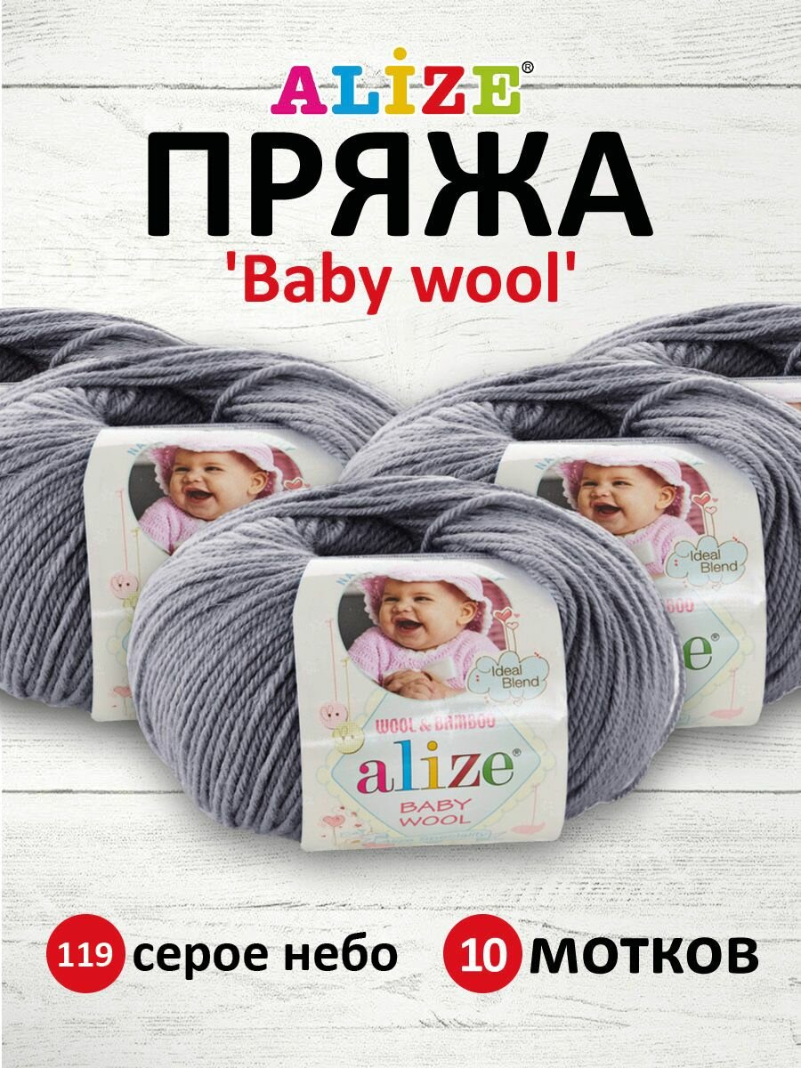 СохранитьПряжа для вязания Alize Baby Wool 119 серое небо, 50 г, 175 м, 10 штук интересное: