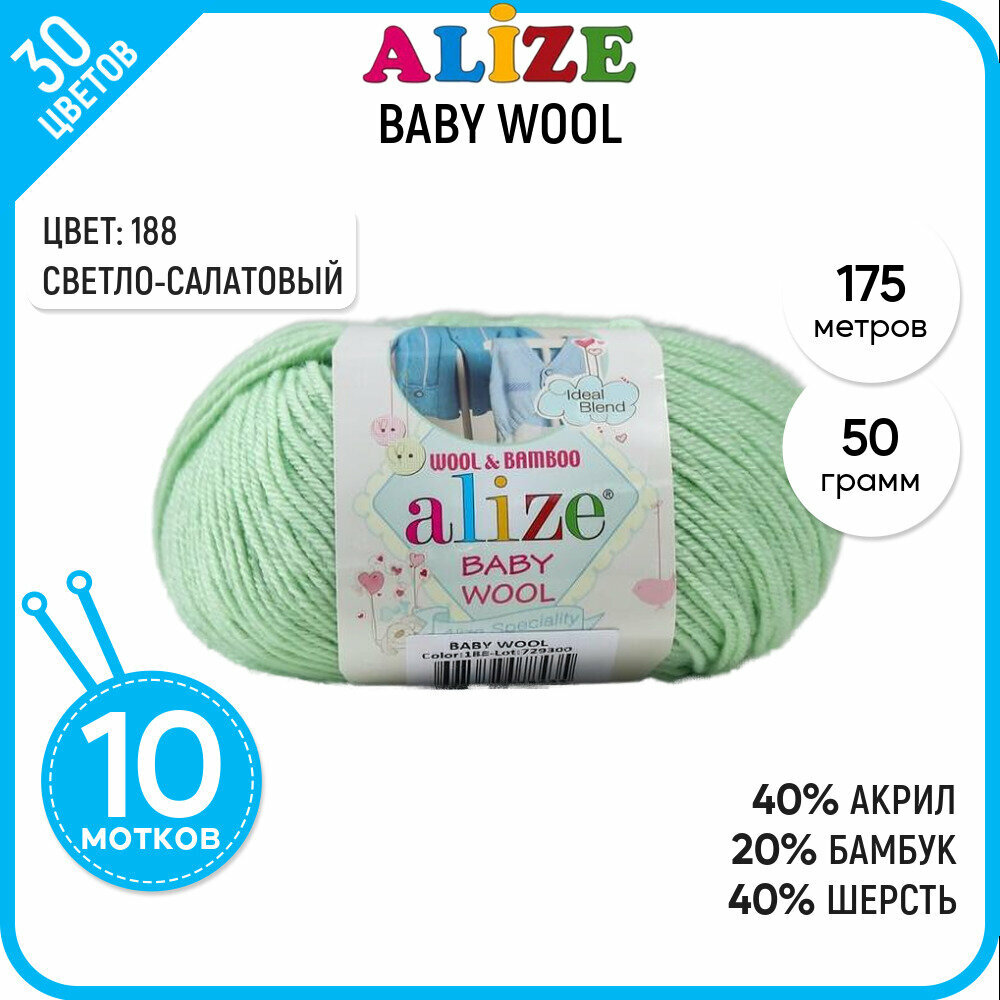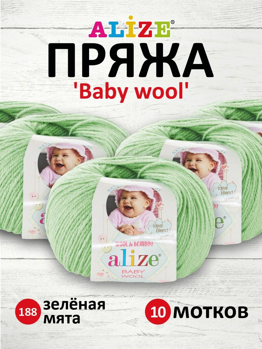 Купить Пряжа для вязания Alize Baby Wool 188 зеленая мята, 50 г, 175 м, 10 штук