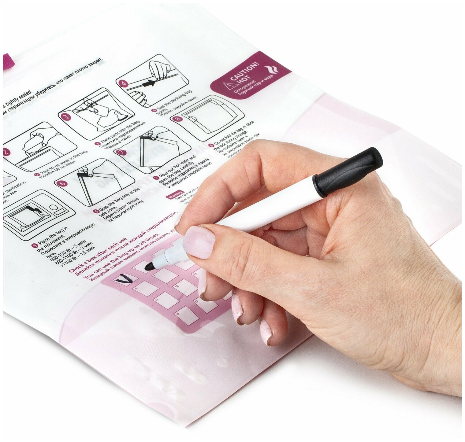 | Плюсы: | Хорошие пакеты с бегунком для закрывания. Маркер в комплекте |