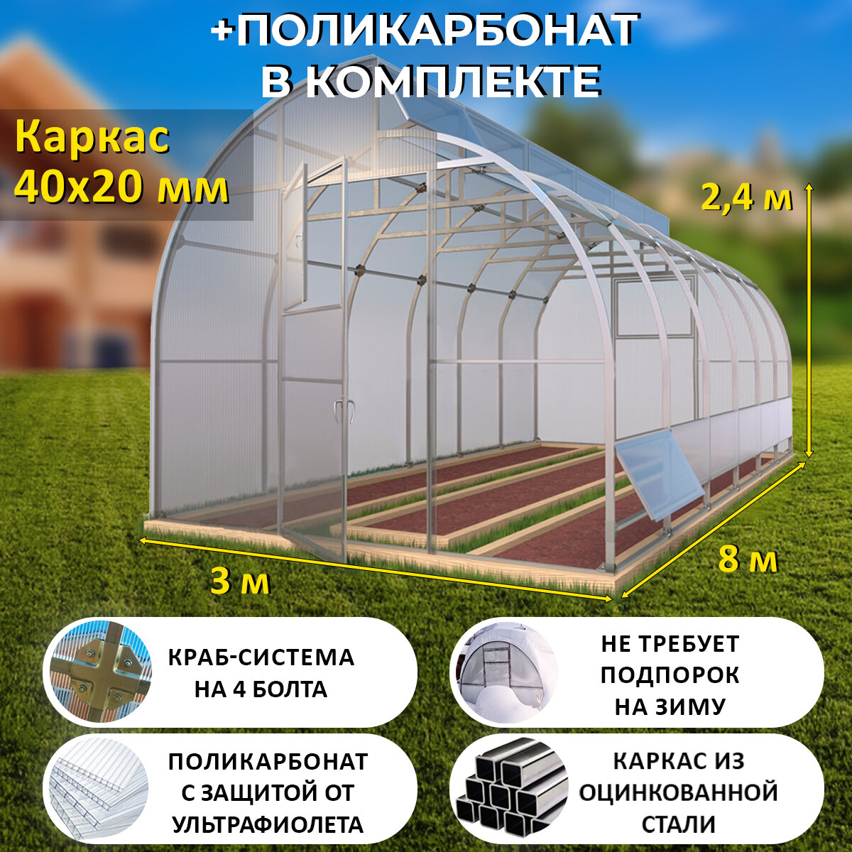 | Материал теплицы | поликарбонат |