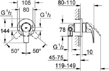 Grohe BauCurve 123072 Встроенный смеситель с гигиеническим душем