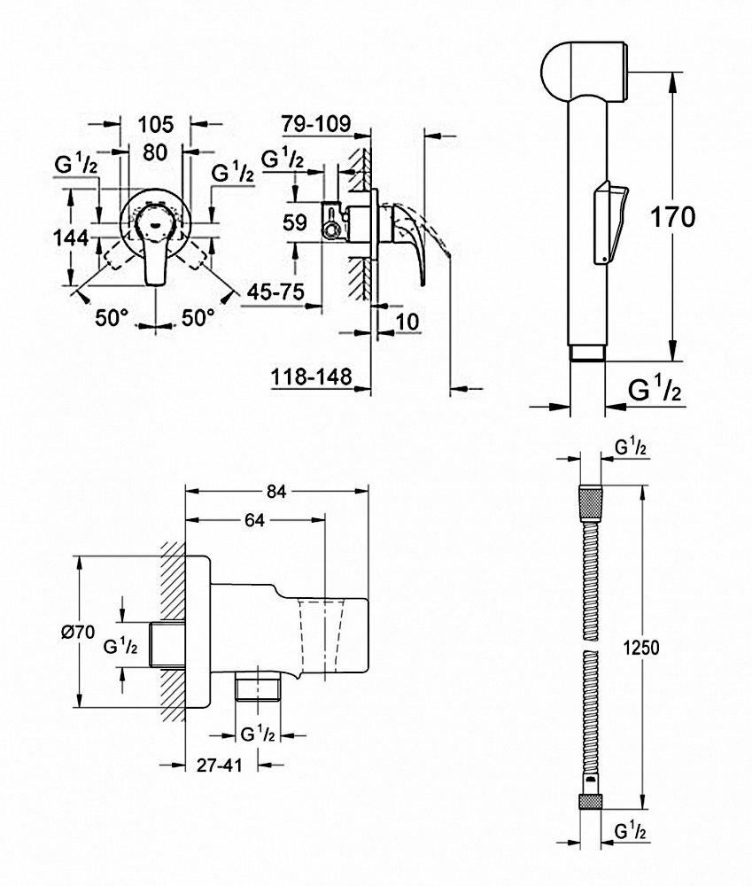 Готовый комплект для гигиенического душа GROHE BauCurve 123072