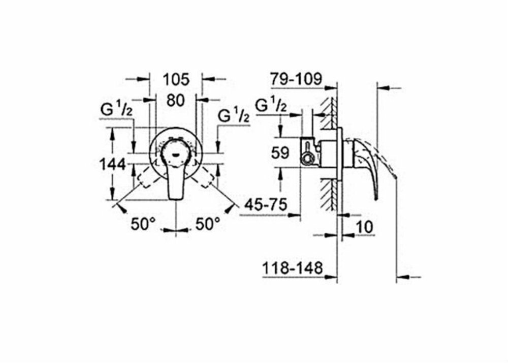 Готовое решение для гигиенического душа скрытого монтажа Grohe BauCurve 123072