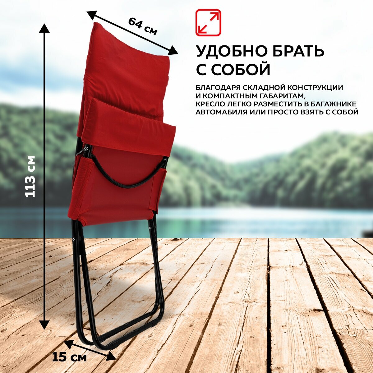 Кресло складное 85х64х85 см, красное, с матрасом, Nika, ННК4/R