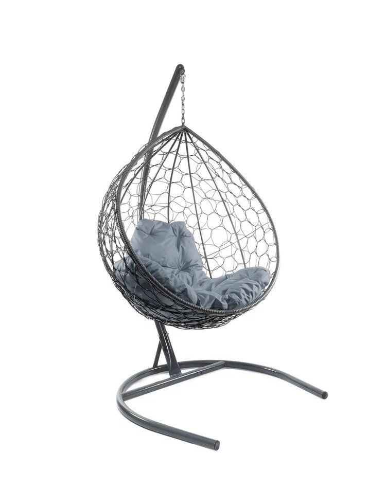 Купить Подвесное кресло из ротанга "Капля" серое с серой подушкой M-Group