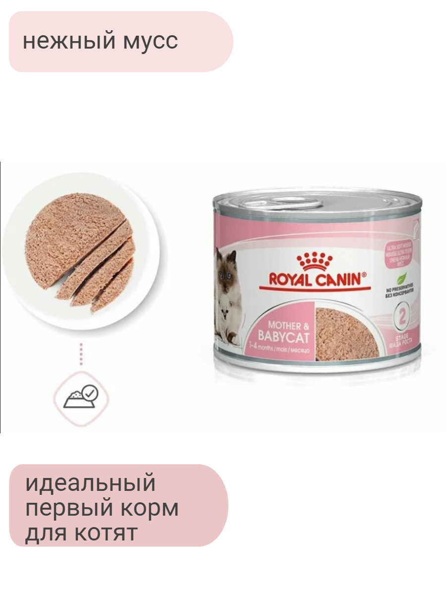 Ниже Вы можете прочитать отзывы на Влажный корм Royal Canin Mother & Babycat (Babycat Instinctive canned) 6 шт. х 195 г (паштет), ознакомится с подробными характеристиками, посмотреть интересные обзоры и фотографии на Влажный корм Royal Canin Mother & Babycat (Babycat Instinctive canned) 6 шт. х 195 г (паштет).