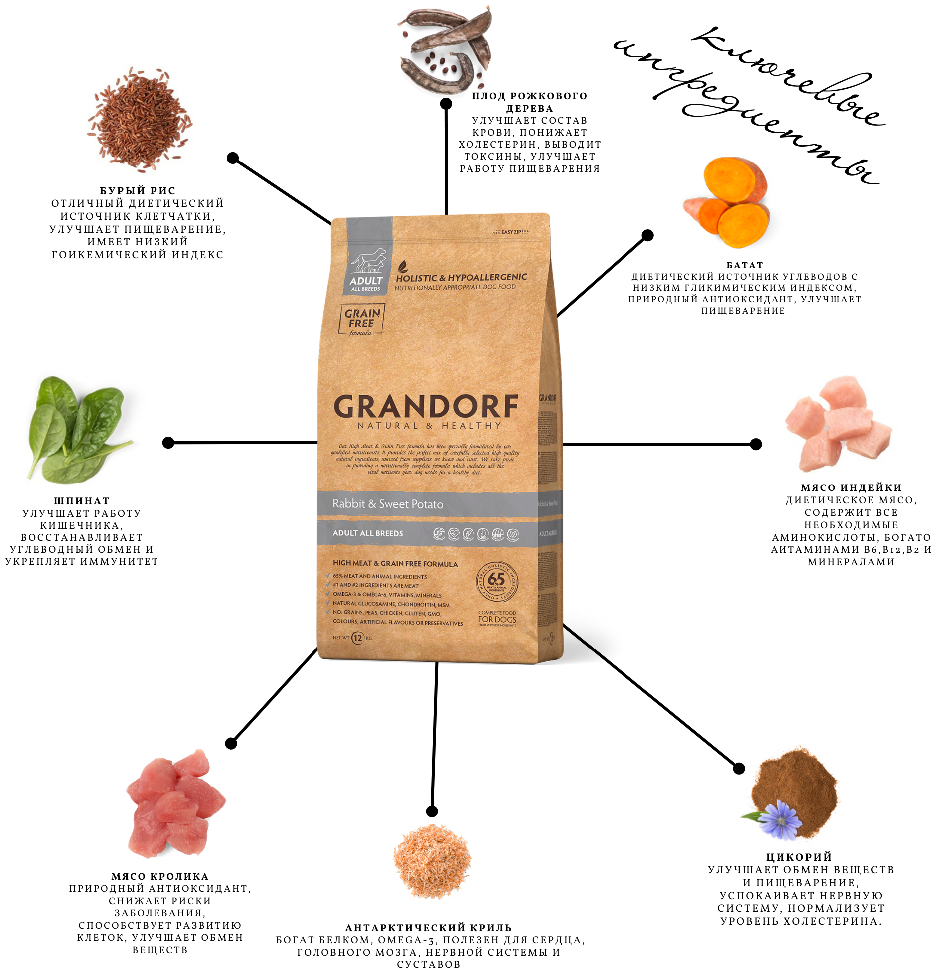 GRANDORF GRAIN FREE DOG ADULT MEDIUM & MAXI RABBIT & TURKEY беззерновой для взрослых собак средних и крупных пород с кроликом и индейкой(1 + 1 кг)