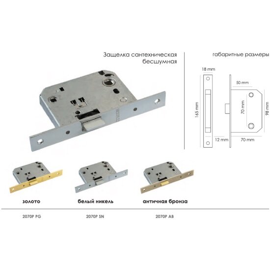 Защелка бесшумная сантехническая Morelli 2070P PG золото, пластиковый язычок