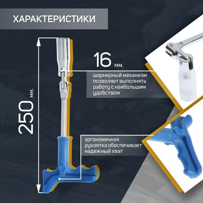 Ключ свечной тундра, с карданным шарниром, 16 мм
