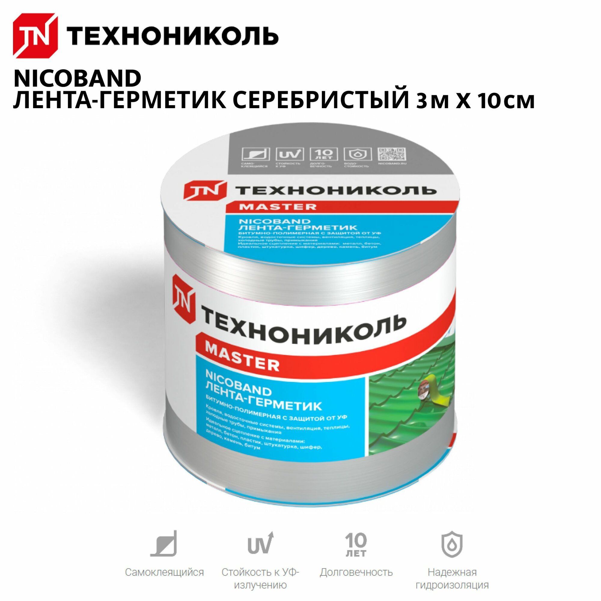 Самоклеящаяся битумная лента герметик NICOBAND ТехноНиколь 3 м х 10 см, серебристый