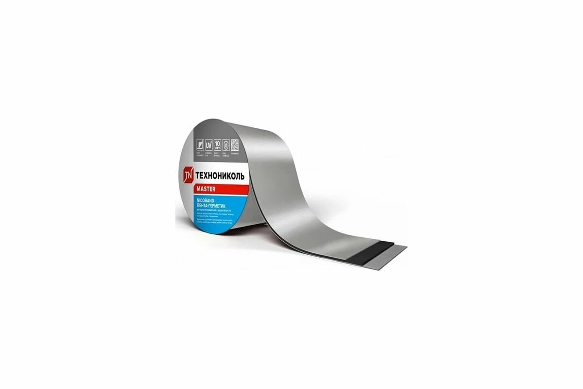 Герметизирующая лента Никобэнд (Nicoband) ТЕХНОНИКОЛЬ самоклеющаяся лента-герметик, серебристый 10м х 10 см