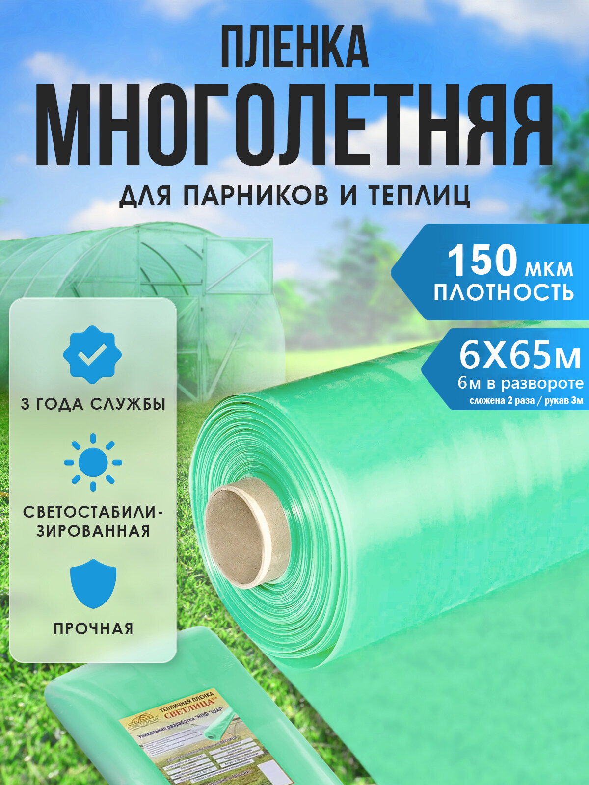 Многолетняя полиэтиленовая пленка рукав 150 мкм, 6 x 65 м, высота 1,5 м, 1 сорт, сложена в два раза