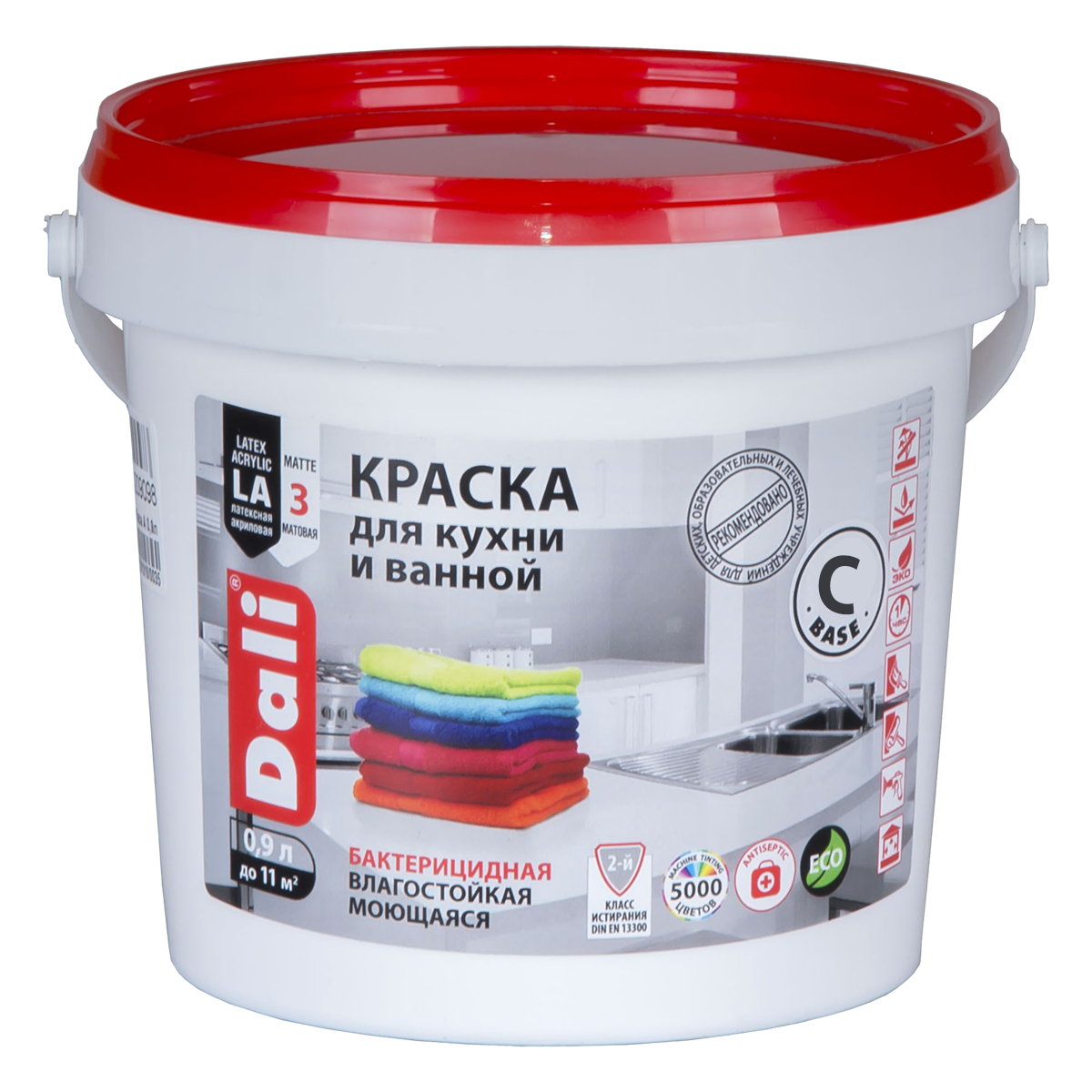 Краска интерьерная DALI для кухни и ванной, влагостойкая, глубокоматовое покрытие, бесцветный, база С, 0,9л