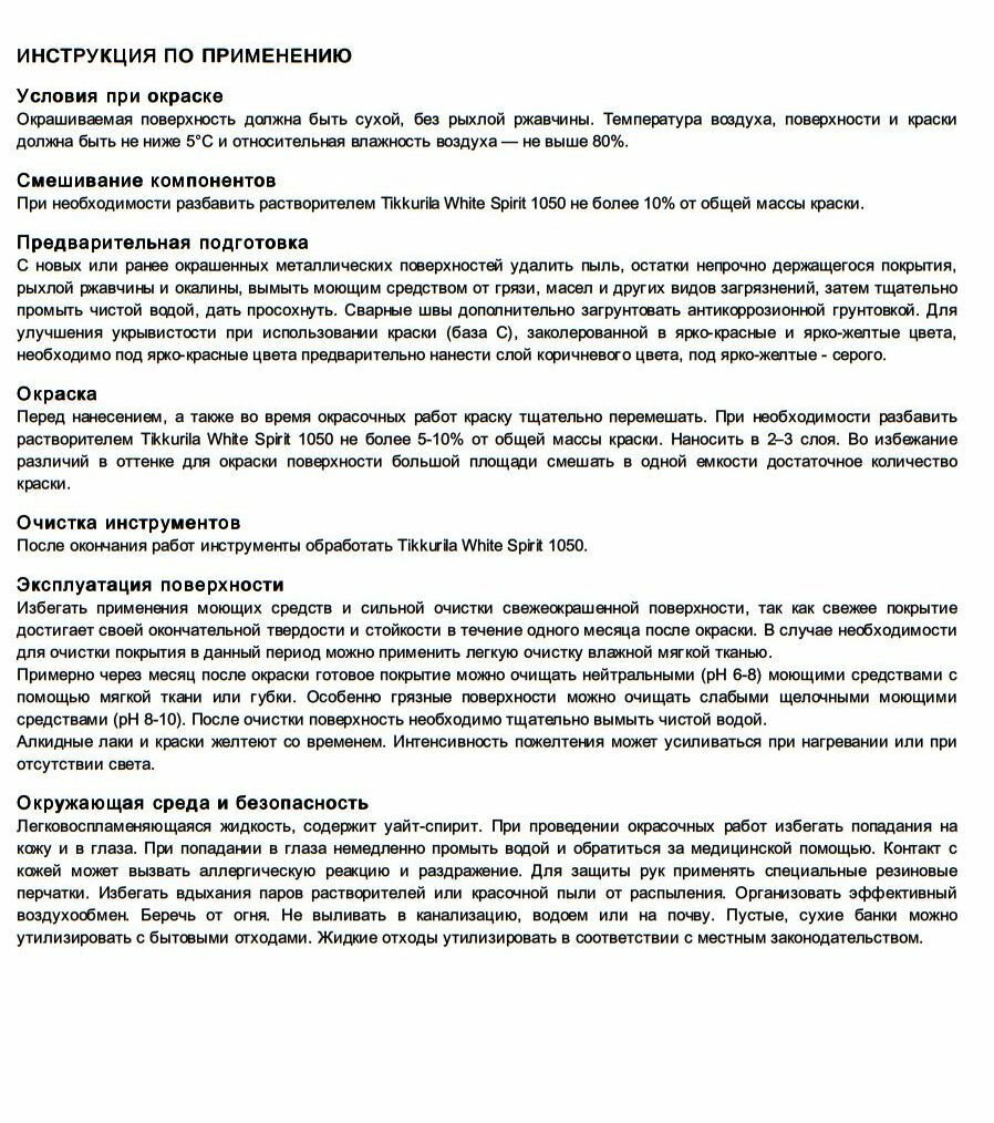 Tikkurila Metallista / Тиккурила Металлиста краска по ржавчине для внутренних и наружных работ 2,3л База А