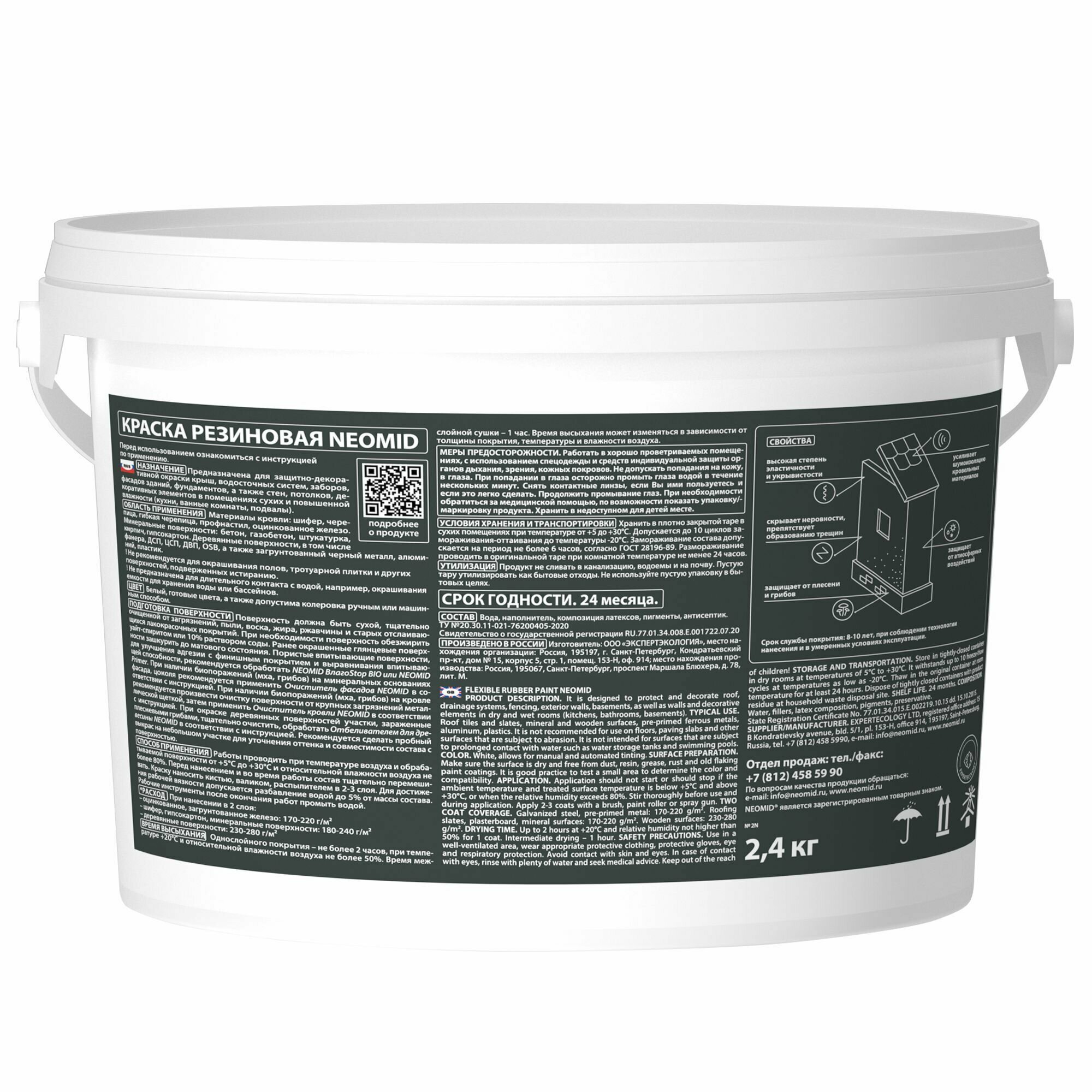 Резиновая краска NEOMID Белый RAL 9003 (2,4 кг) / Для фасадов, для стен и потолков в помещениях повышенной влажности