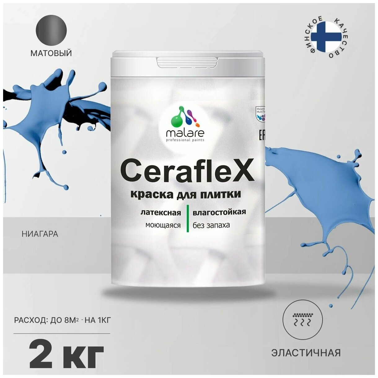 Купить Краска резиновая Malare Ceraflex для керамической плитки, эластичная, моющаяся, быстросохнущая, без запаха, матовая, ниагара, 2 кг.