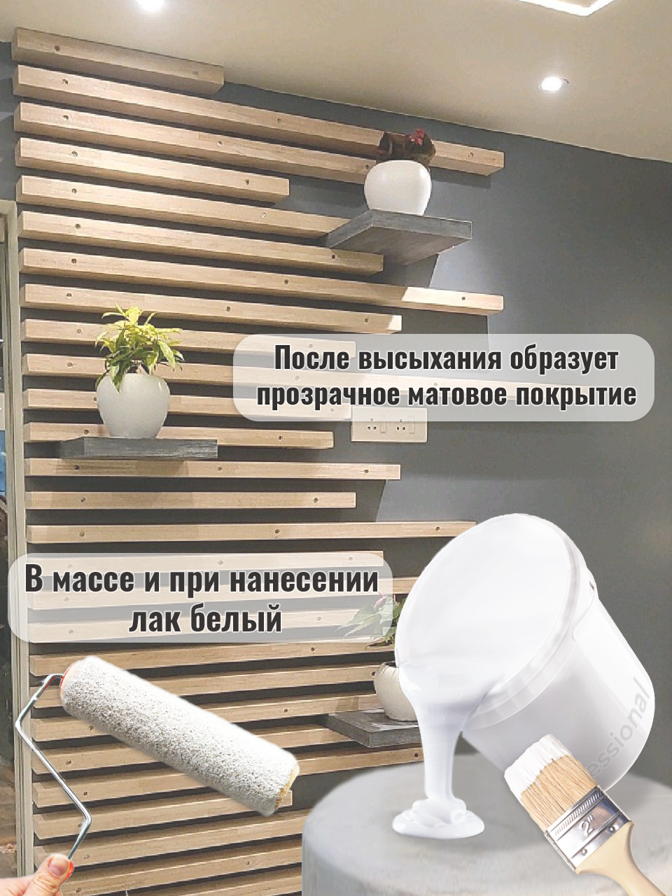 Лак акриловый матовый финиш PROFESSIONAL, лак строительный, лак для дерева, для гипса, для бетона защитно-декоративный 1кг