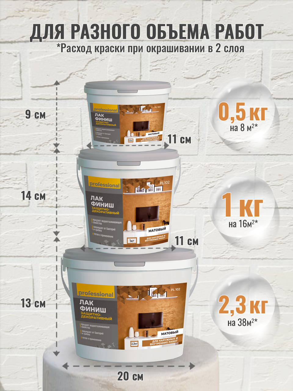 Лак матовый защитно-декоративный для нар. и вн. работ PL102 ( 2,3кг) ТМ "Professional"
