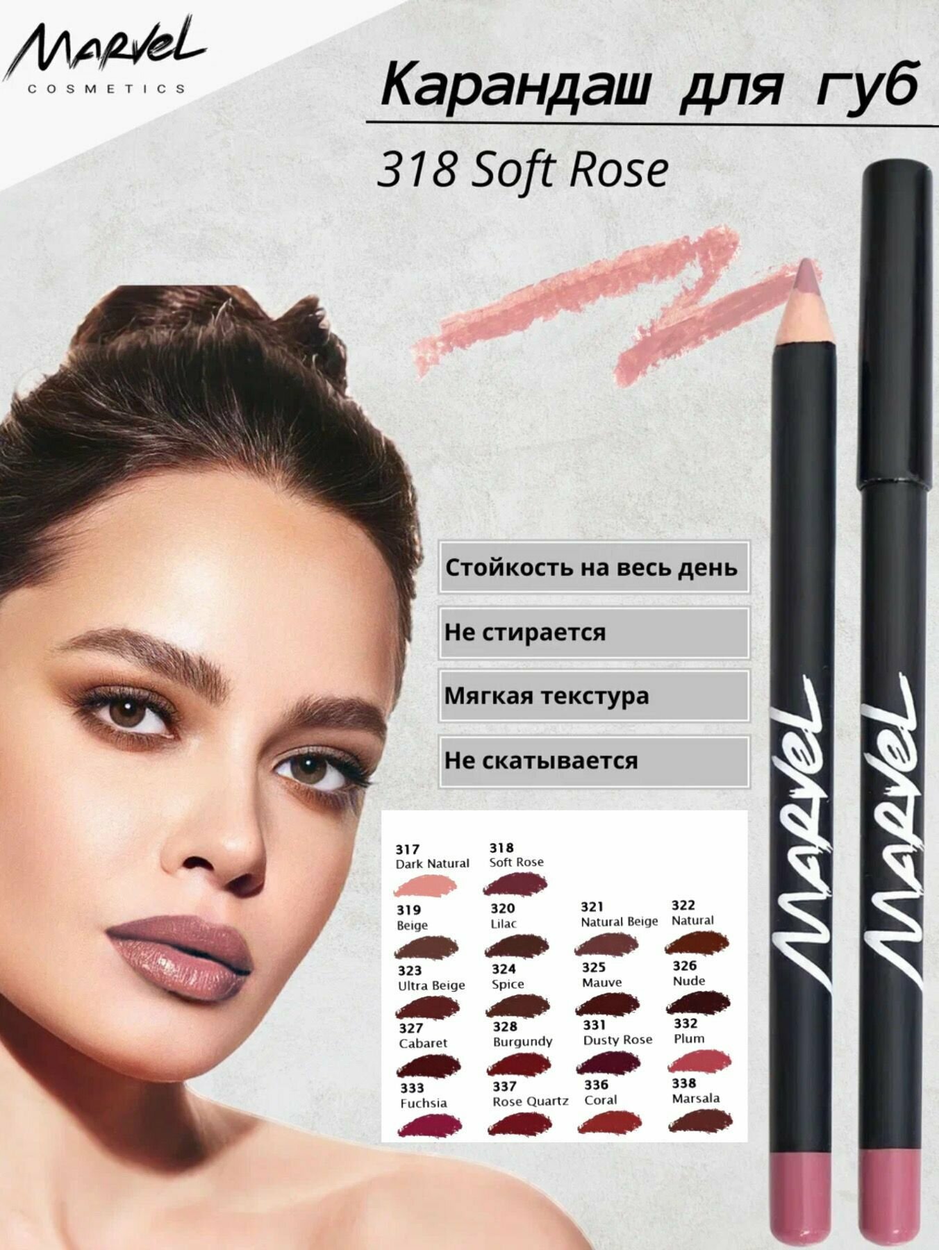 Купить Марвел Косметикс / Marvel Cosmetics - Карандаш для губ Lip Liner Pencil тон 318 Soft Rose