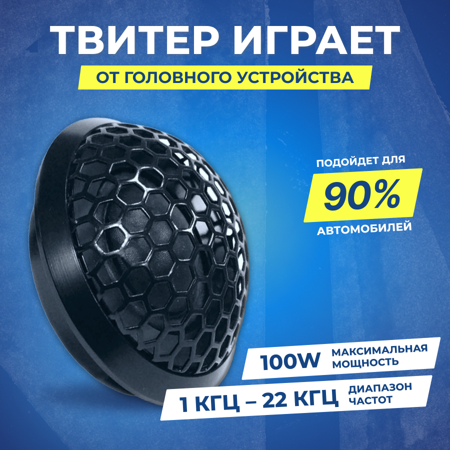 Колонки автомобильные Ural AS-W25TW SQ (без решетки) 100Вт 92дБ 4Ом 2.5см (1дюйм) (ком.:2кол.) высокочастотные однополосные