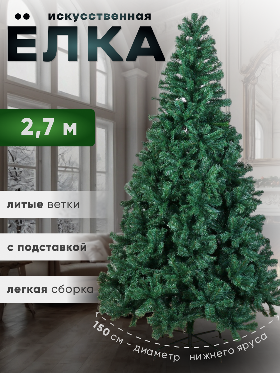 Купить Ель голубая 270 см, d нижнего яруса 150 см, 1850 веток 703958 .