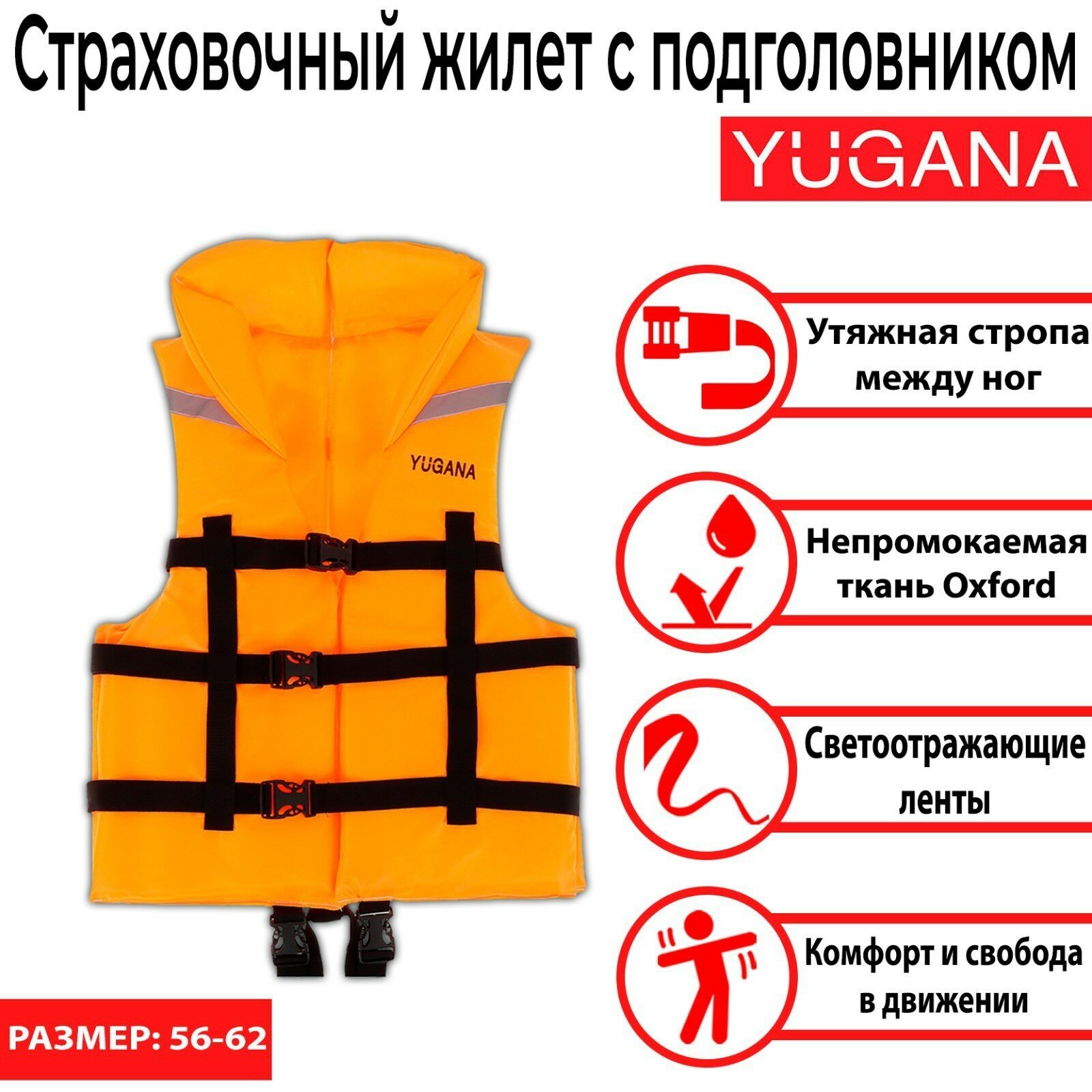 Купить Жилет страховочный с подголовником Yugana, р.56-62, оранжевый Yugana 7997787