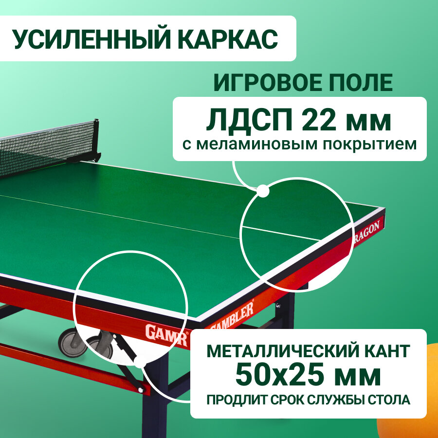 Теннисный стол профессиональный proven quality для помещения GAMBLER DRAGON green GTS-8 s-dostavka