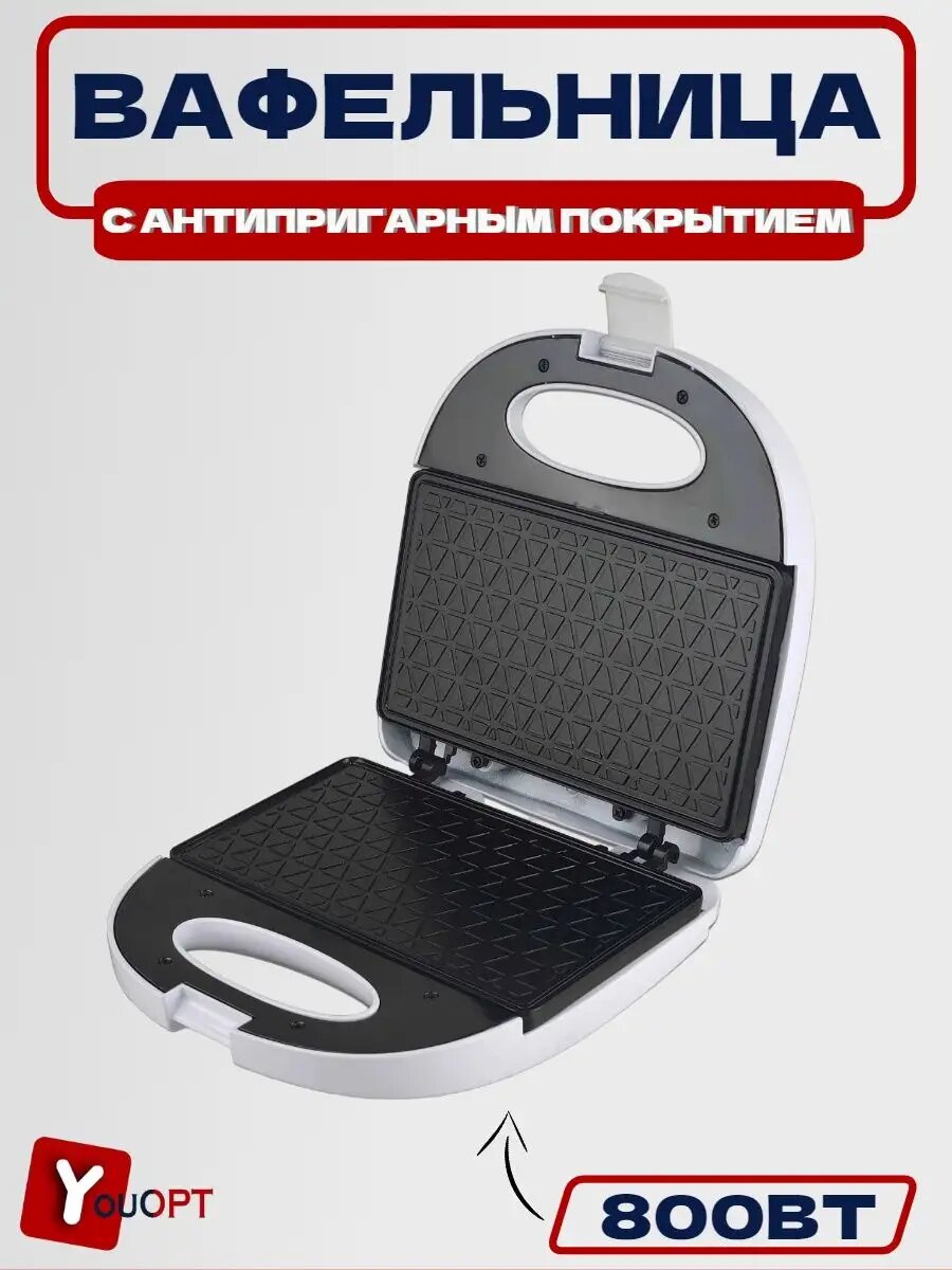 Вафельница WILLMARK WM-280 (2 квадр. полуформы "вафли", антиприг. покрыт, 800Вт, белая)