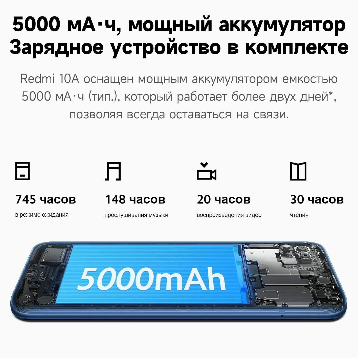смартфон-Redmi 10A-4GB/64GB grey Mach 5000 высокой мощности