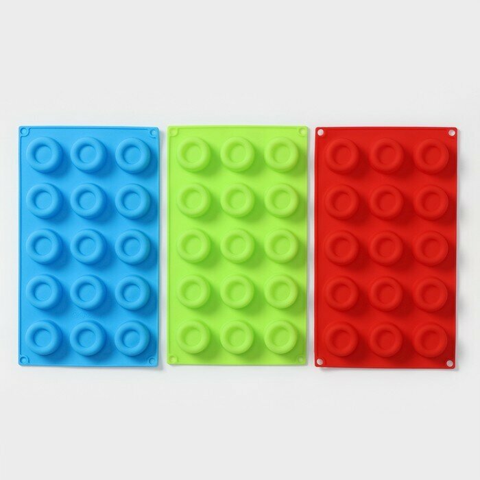 Форма силиконовая для выпечки Доляна «Лолли.Круг», 30×17×2,5 см, 15 ячеек, цвет микс
