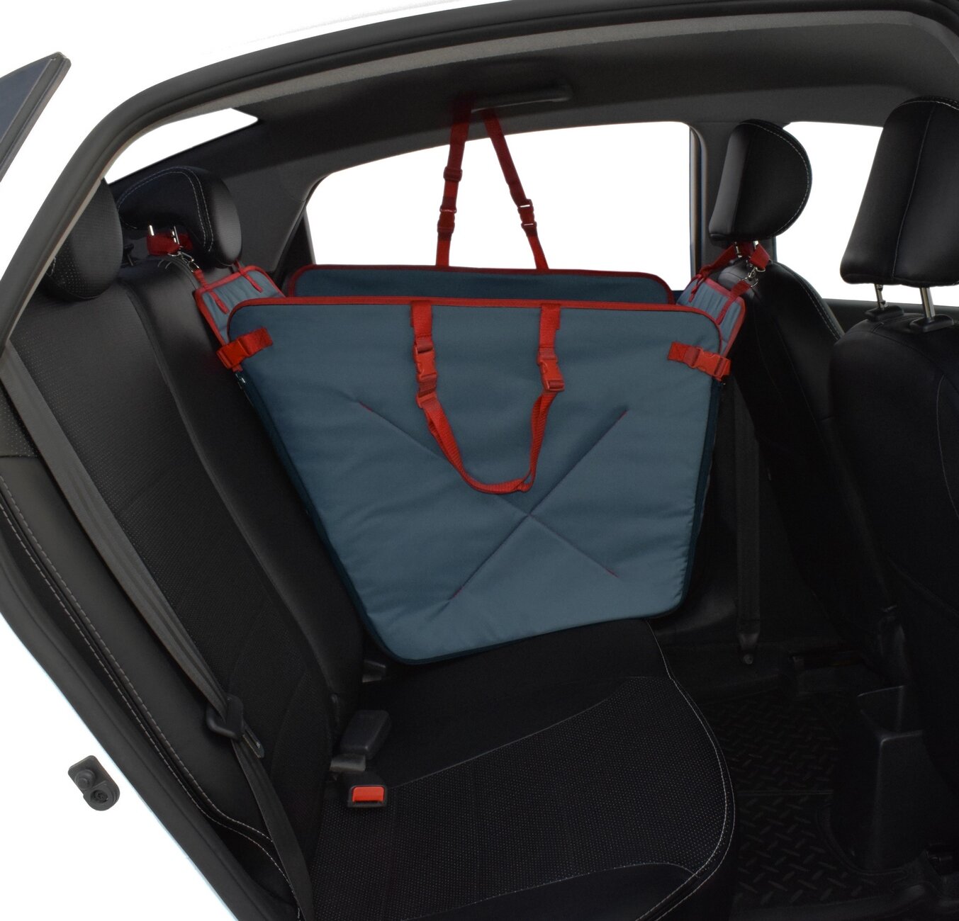 Автогамак Хэппи Дог. На 1/3 заднего сиденья. Цвет - серый с красной окантовкой.