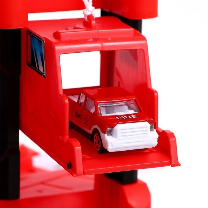 Парковка «Пожарная станция», свет, звук, лифт, с металлическими машинками и вертолётом