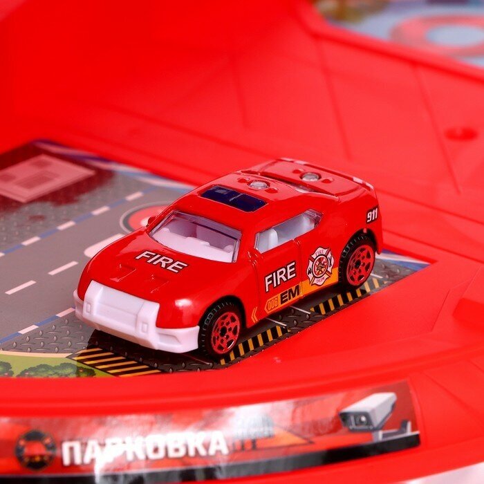Автоград Парковка «Пожарная станция», свет, звук, лифт, с металл машинками и вертолётом