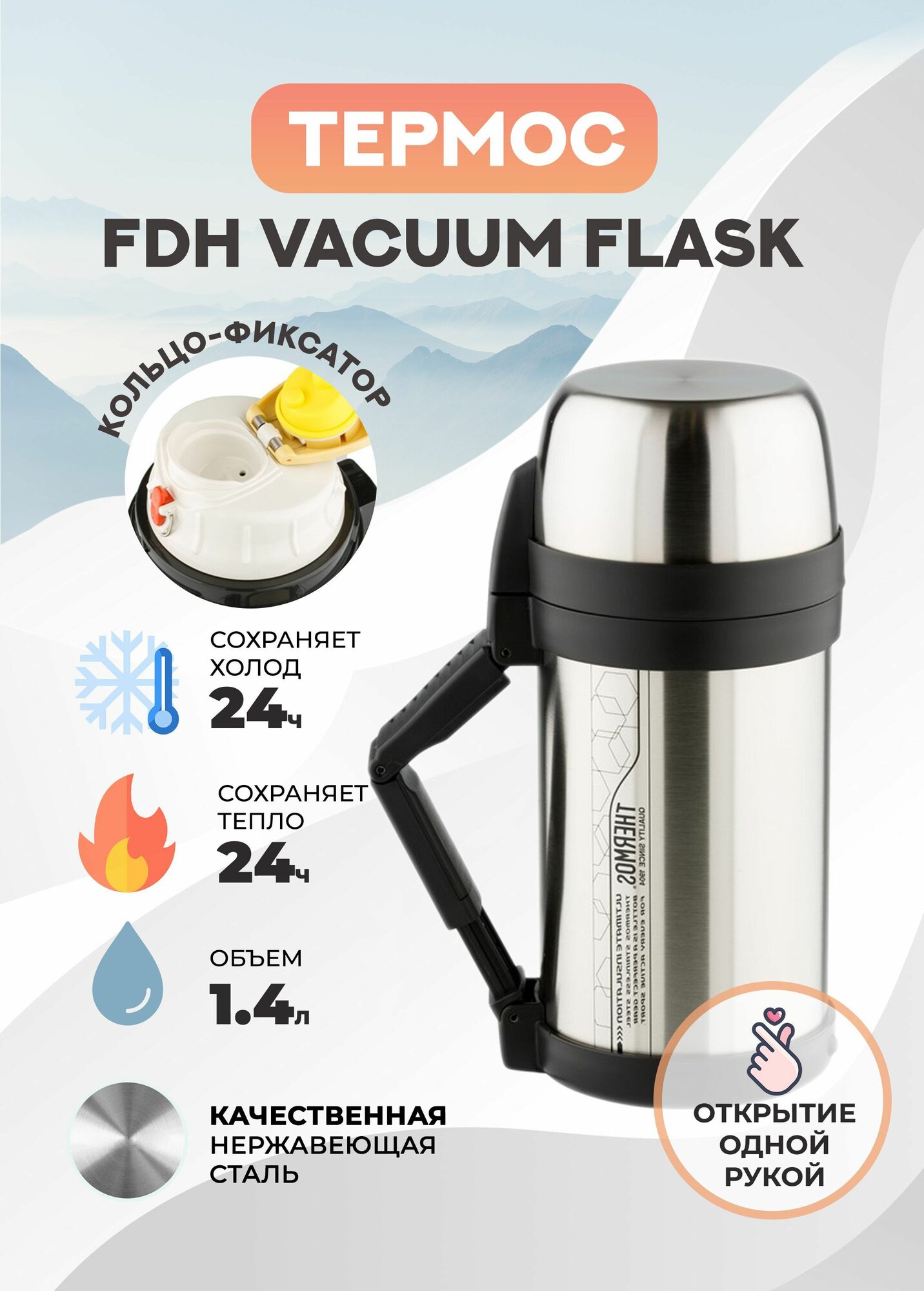 Thermos Термос FDH Stainless Steel Vacuum Flask 1.4L, шт 923639