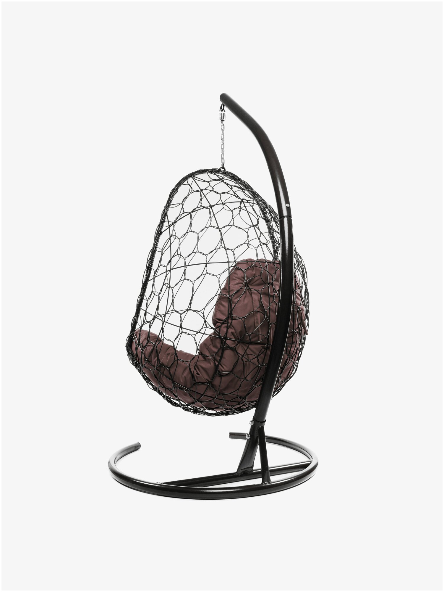 Подвесное кресло овал с ротангом чёрное, коричневая подушка