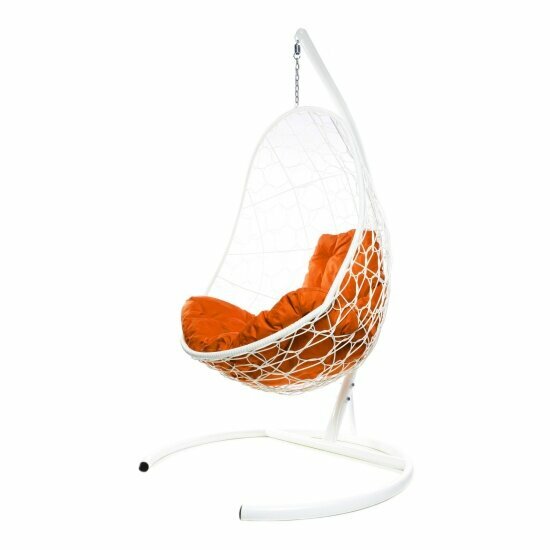 Купить Подвесное кресло из ротанга "Овал" белое с оранжевой подушкой 830х700х1190 M-Group