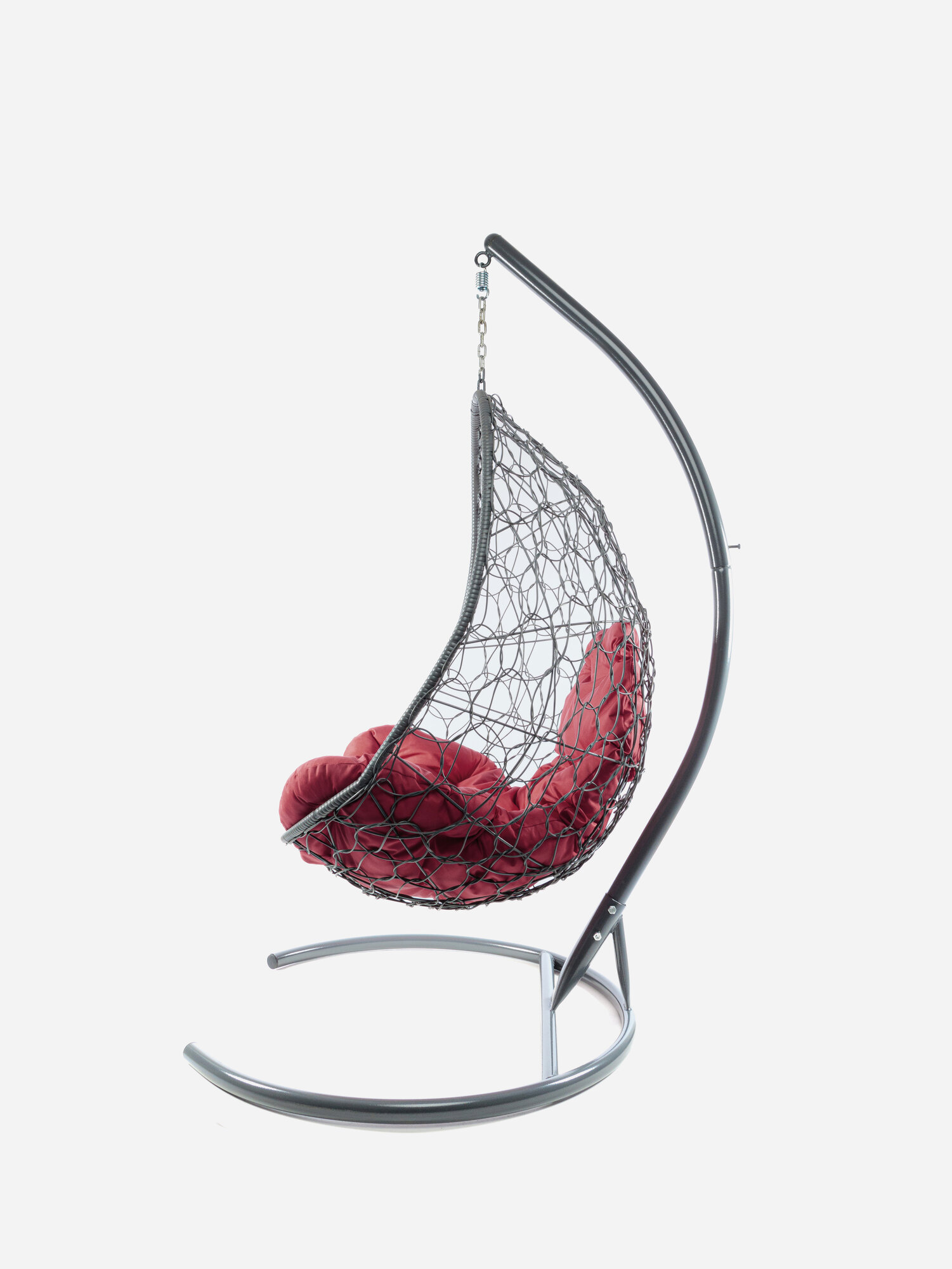 Купить Подвесное кресло из ротанга "Овал" серое с бордовой подушкой 830х700х1190 M-Group