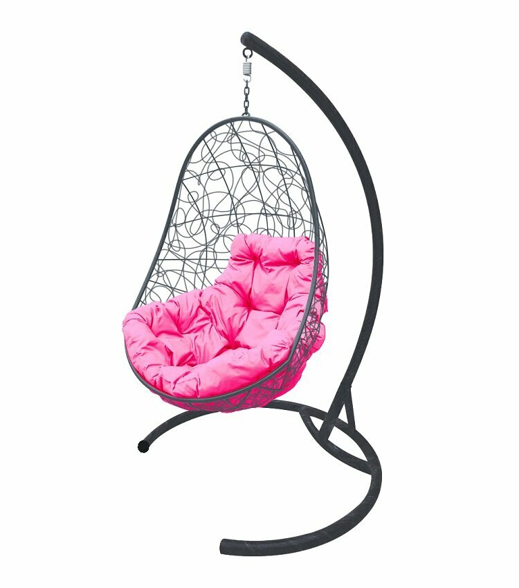 Подвесное кресло овал с ротангом чёрное, розовая подушка