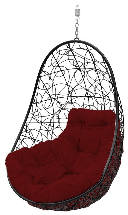 Купить Подвесное кресло из ротанга "Овал" черное с бордовой подушкой 830х700х1190 M-Group