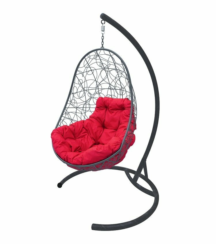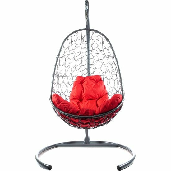 Купить Подвесное кресло из ротанга "Овал" серое с красной подушкой 830х700х1190 M-Group