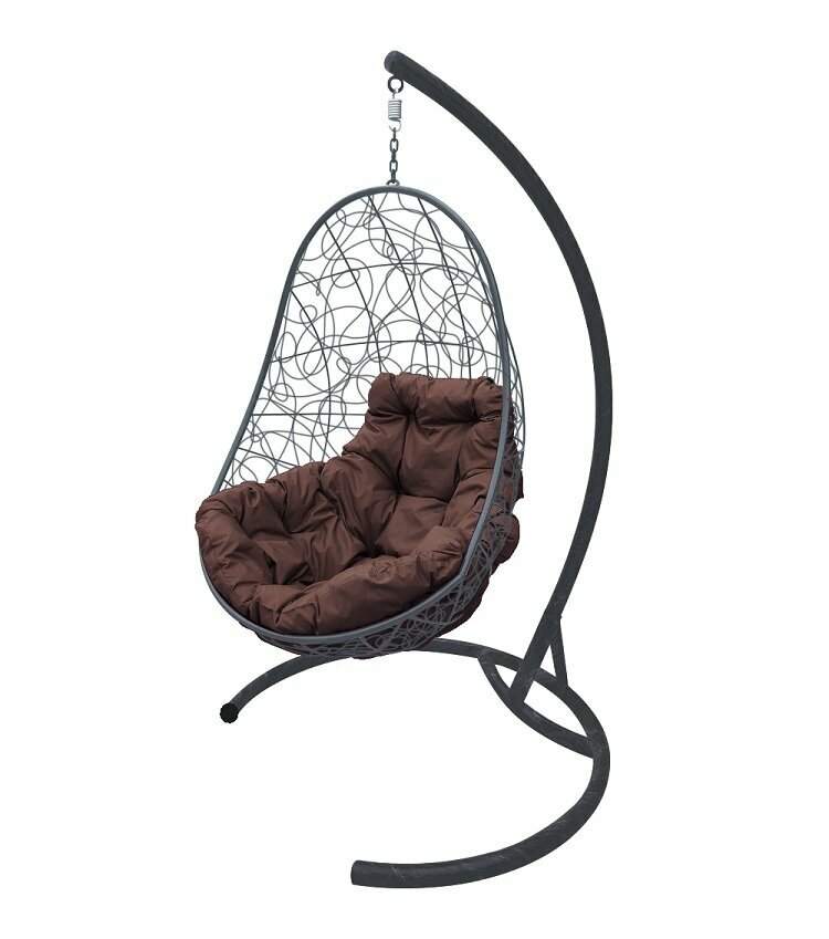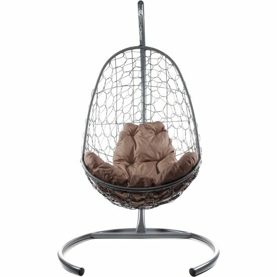 Купить Подвесное кресло из ротанга "Овал" серое с коричневой подушкой 830х700х1190 M-Group