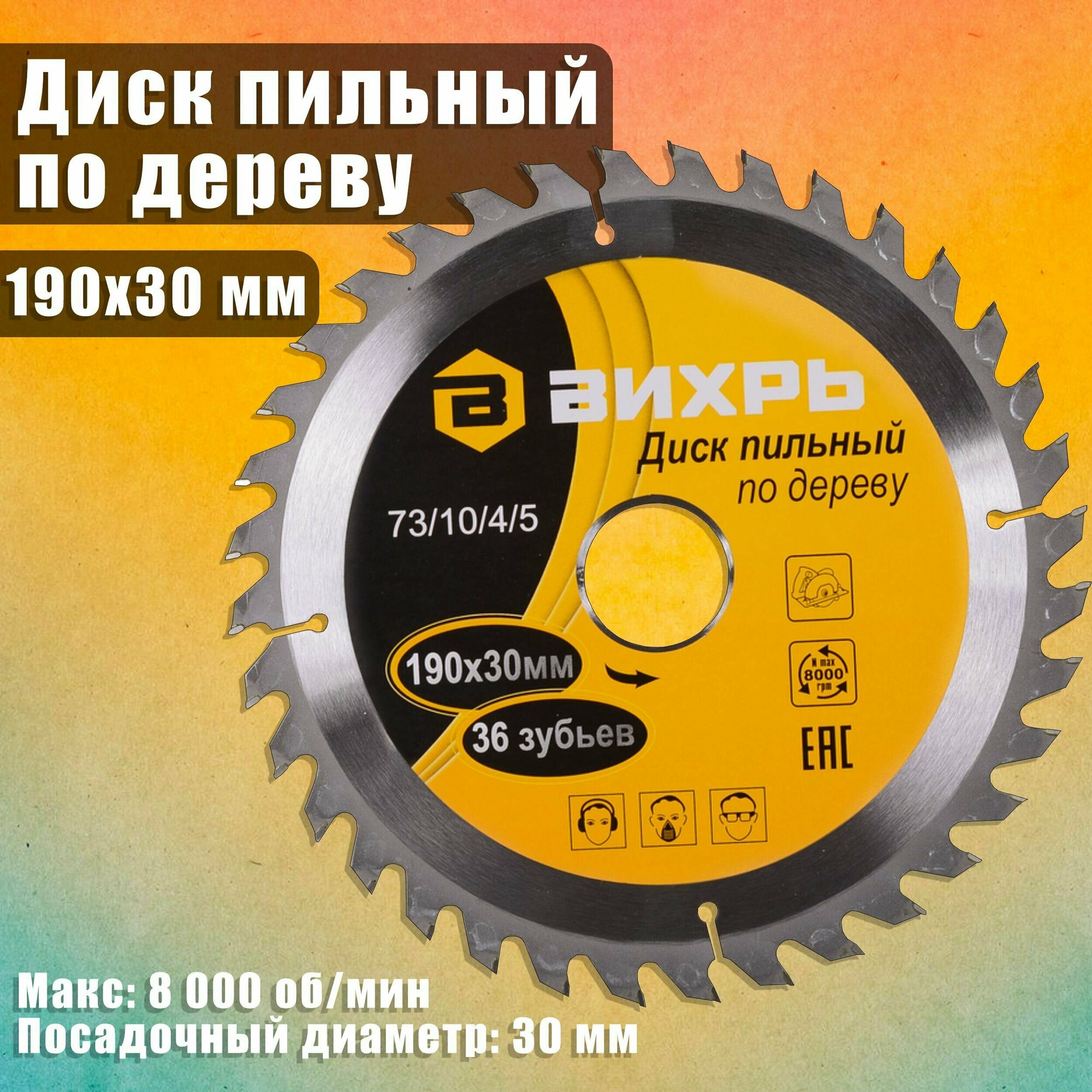 Диск пильный по дереву вихрь 190х30мм36 зубьев