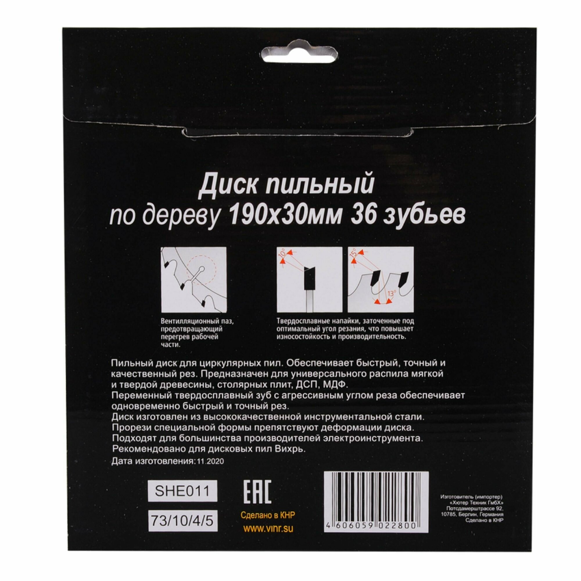 Диск пильный по дереву 190х30 мм,36 зубьев Вихрь интересное: