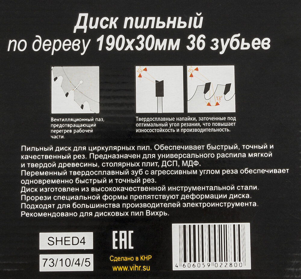 Ниже Вы можете прочитать отзывы на Диск пильный по дереву 190х30 мм,36 зубьев Вихрь, ознакомится с подробными характеристиками, посмотреть интересные обзоры и фотографии на Диск пильный по дереву 190х30 мм,36 зубьев Вихрь.