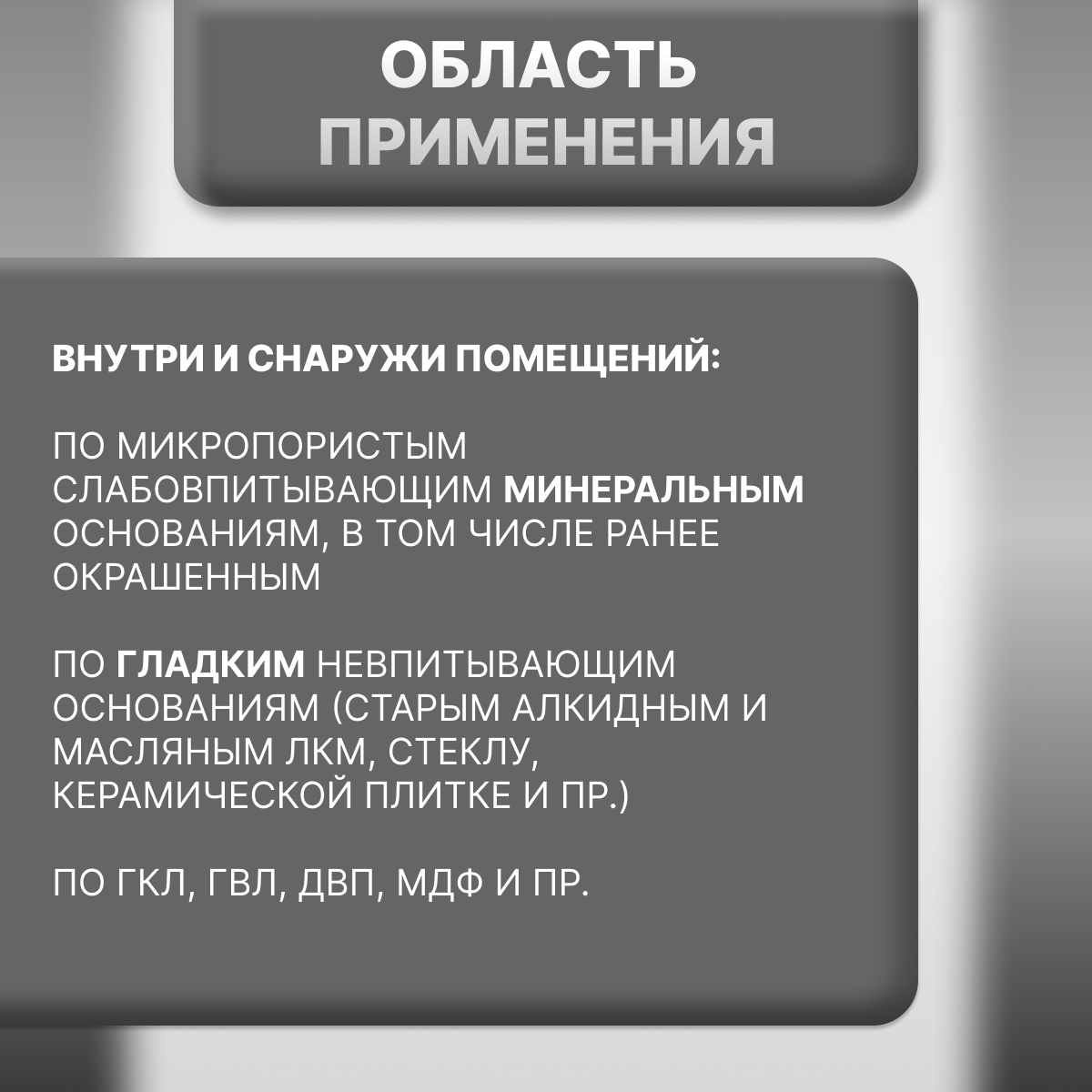 | Область применения | для наружных и внутренних работ |