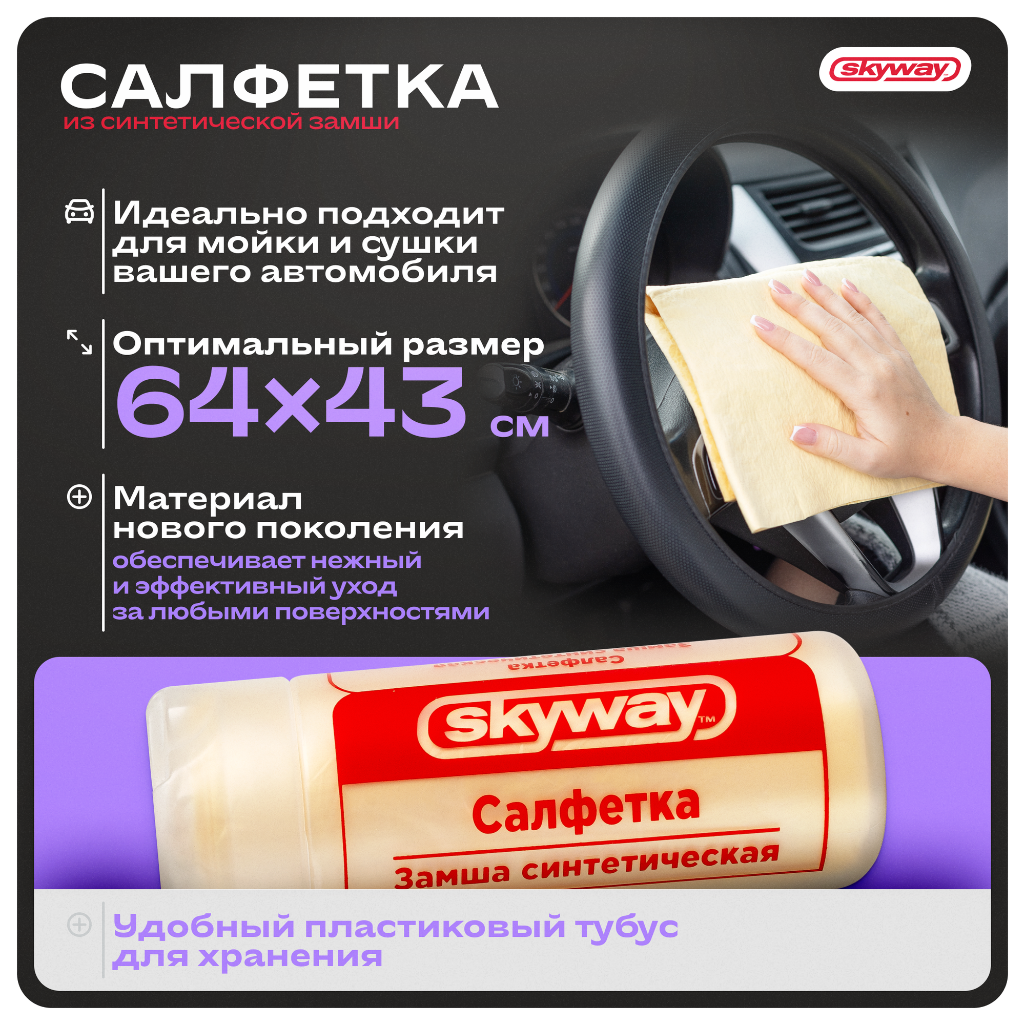 Купить Салфетка замша искусственная 64*43см SKYWAY большая в тубе, S03901002